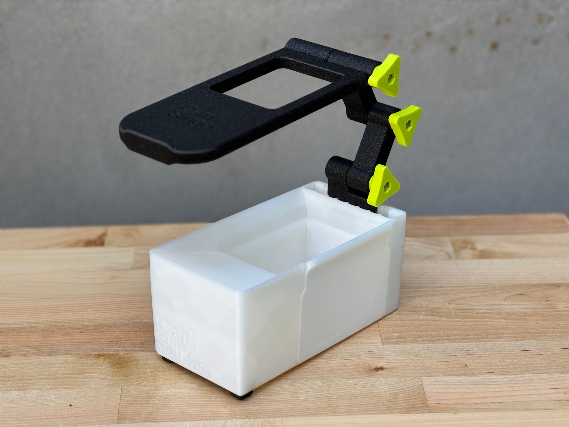 The adjustable stand is a new upgrade for scanning cards with ANY app with any phone and position requirements. Adjust to your hearts content! Scan em all!
